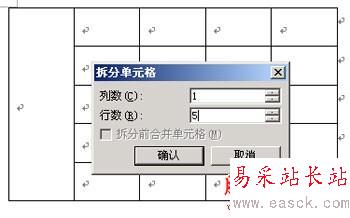 而在WPS文字2005中,這一功能也消失了(微軟的沒有這個功能)。當我們想把合并過的單元格再次拆分成與旁邊一致時,是不是只能用鉛筆工具一個一個地畫呢?其實不然。如圖2,把光標置于要拆分的單元格中,點擊拆分單元格按鈕,將“列數”設為1,用鼠標點住“行數”后面向上的調整箭頭不放,片刻,“行數”就定位在“5”上不到了。而此單元格右側的行數正好是“5”!用這個辦法,我們不用再一個一個地數到底有幾行了,更不用拿著“鉛筆”一條一條地畫線了!