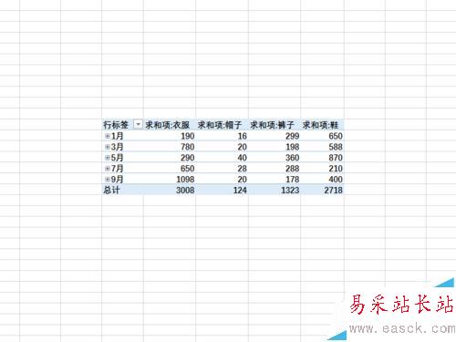 10、我們就可以看到我們設置的數(shù)據(jù)透視表就完成了,而且直接計算完畢,非常便捷。