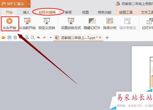 8、單擊幻燈片放映,可以找到放映工具。單擊從頭開始,播放全部幻燈片。以上兩種切換視圖的方法,你學會了嗎?