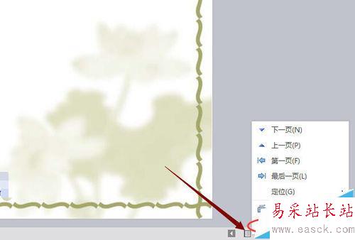 5、單擊菜單---結束放映。或者右擊幻燈片也會彈出菜單,選擇結束放映。單擊第四個按鈕可進行全屏播放。退出方法一樣。
