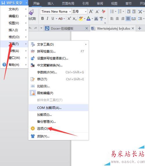 1、打開wps,在左邊上角點(diǎn)擊三角形按鈕,再點(diǎn)擊工具,彈出對(duì)話框找到選項(xiàng),如圖