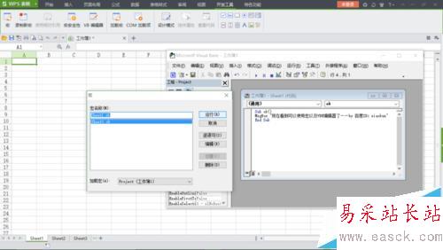 4、現(xiàn)在打開(kāi)VBE編輯窗口來(lái)試驗(yàn)一下,輸入一段簡(jiǎn)單的宏代碼: