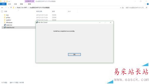 2、當(dāng)安裝完成就會(huì)出現(xiàn)“Install has completed successfully”的文字提示,表示安裝已經(jīng)成功完成,點(diǎn)擊“OK”就可以了,安裝窗口就關(guān)閉了。