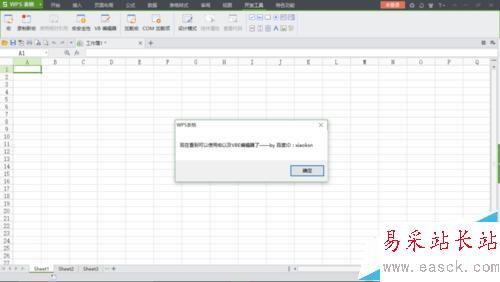 5、運(yùn)行該宏之后就彈出一個(gè)消息窗口,內(nèi)容就是代碼里要求出現(xiàn)的內(nèi)容,也就是說(shuō)宏在WPS表格中現(xiàn)在是完完全全可以使用的了。