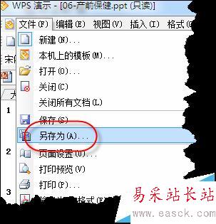 5、打開它之后大家可以看到標題欄上的“只讀”按鈕,但還是不管它,點擊“文件”菜單下的“另存為”