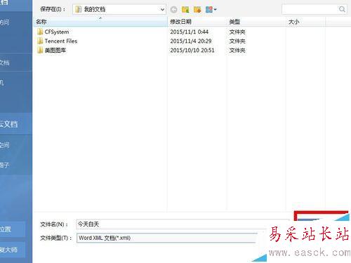 6、然后打開最下方的選項右側的向下的箭頭,會彈出很多種保存格式。在最下方,我們就能夠看到有個Word XML的格式。我們選擇一下。