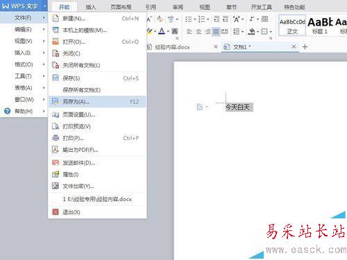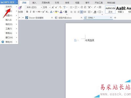 3、在想要保存的時候,點擊左上角的WPS文字字樣的地方,會彈出一個下拉菜單。