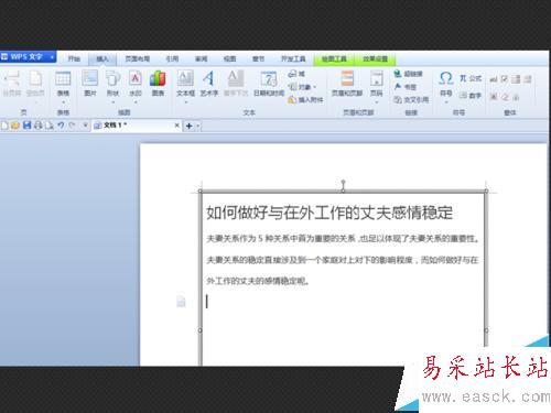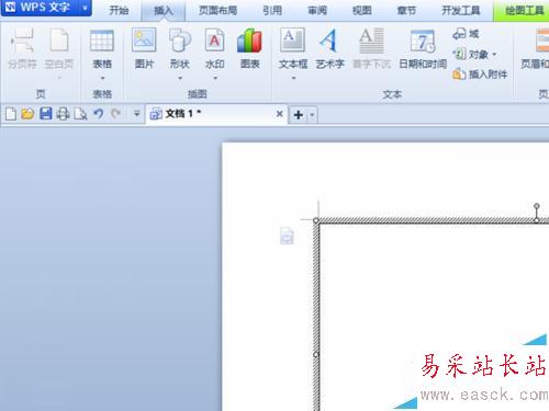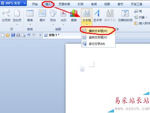 3、選擇好“橫向文本框”后,將鼠標放在下面的空白文檔中,當鼠標變成“十”字光標后,沿著文檔的左上角向右下角拖動,直到自己需要的大小。