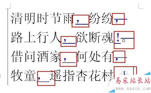 4、比如我們感覺(jué)這篇文字的斷句不對(duì)就要?jiǎng)h除一些斷句用的逗號(hào)或者句號(hào),被我們刪掉的標(biāo)點(diǎn)(文字)有上劃線,被我們加入的文字(標(biāo)點(diǎn))有上劃線。修訂完成后如圖。