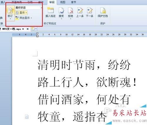 5、那么怎么才能區(qū)分看呢?很簡(jiǎn)單點(diǎn)擊修訂右方的顯示最終狀態(tài)就可以看到了。