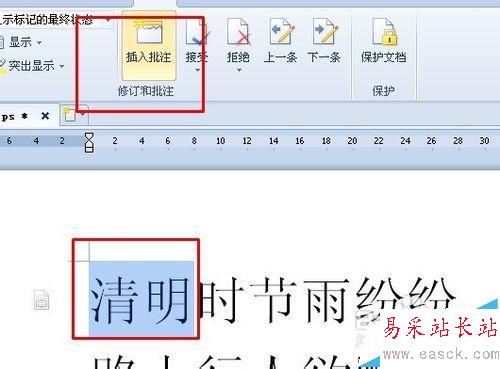 3、選中清明兩個(gè)字,選擇插入批注,這里是你需要批注那幾個(gè)字就選擇那幾個(gè)字,是根據(jù)自己的需求來(lái)的。