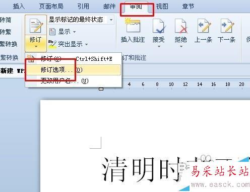 1、修訂其實(shí)就是對(duì)一篇文章進(jìn)行修改,還是剛才那篇,點(diǎn)擊審閱--修訂--修訂選項(xiàng)。進(jìn)入選項(xiàng)設(shè)置,這里批注和修訂的選項(xiàng)是同一個(gè)。