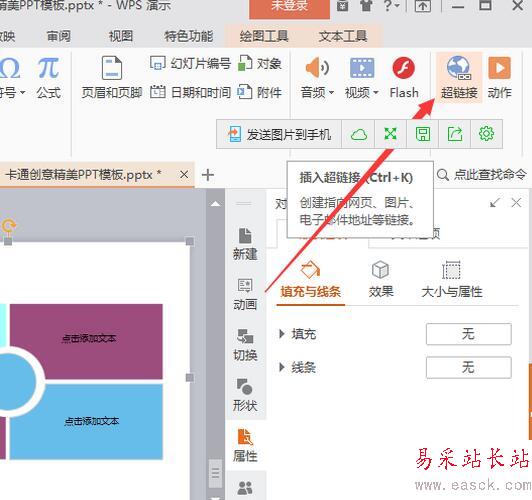 8、繼續(xù)選中圖形,打開插入菜單選項卡,并點擊“超鏈接”選項按鈕。如圖所示;