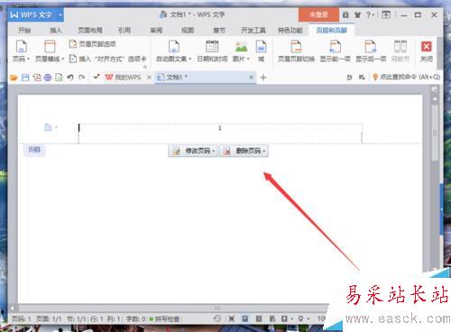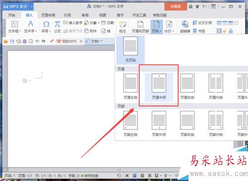 6、返回到Wps文檔中,可看到頁眉中間插入的頁碼效果。如圖所示;