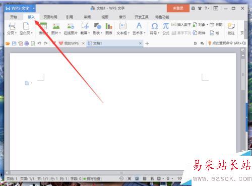 2、在打開的Wps文字程序窗口,打開“插入”菜單選項卡。如圖所示;