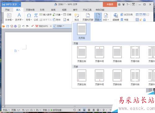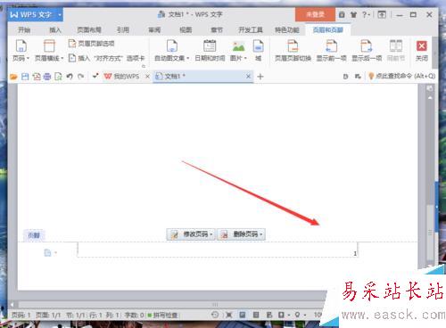 8、返回到Wps文檔中,可看到頁腳右側插入的頁碼效果。如圖所示;