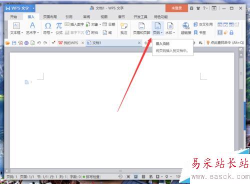 3、在插入菜單選項卡下,點擊“頁碼”選項按鈕。如圖所示;