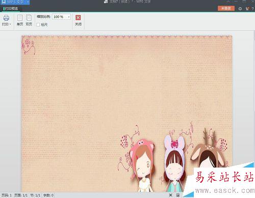 設置背景的方法有兩種,但往往有人發現自己設置的背景不能打印出來。那么如何設置既可以打印出來,又可以自由調整大小的背景圖片呢?請看下面的方法