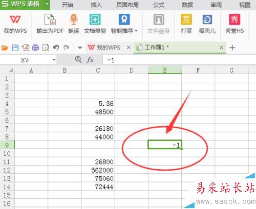 3、在邊上的任意表格中輸入“-1”
