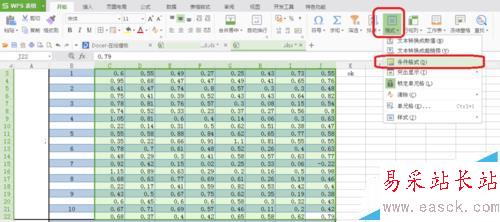 2、然后,依次點擊“開始”中的“格式”,及下拉選項中的“條件格式”(根據實際情況也可選擇點擊“突出顯示”)。