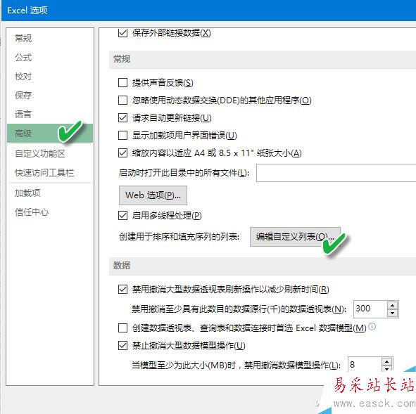 沒錯,就是最后一個設置不同,它位于Excel選項的“高級”分組下: