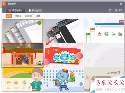 5、點擊皮膚選項,彈出打開更改皮膚對話框,如圖所示:
