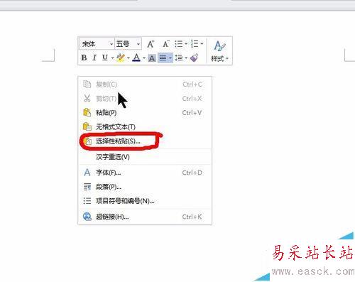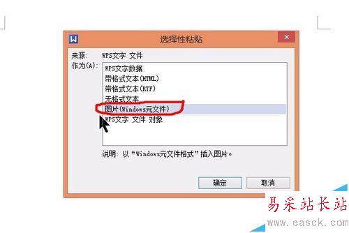 4、在空白文檔出,右鍵鼠標,彈出菜單,點擊選擇性粘貼,彈出對話框,選擇圖片(windows元文件),確定。出現如下圖片格式的表格了。