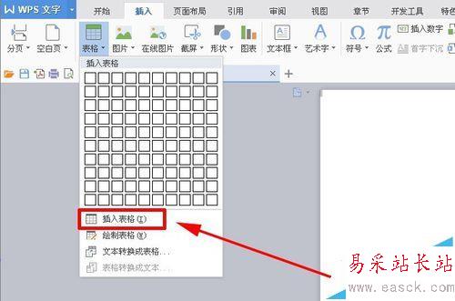 3、點擊菜單欄中的“插入”選項,再點擊菜單中的“表格”,點擊“插入表格”。
