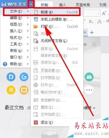 1、點擊WPS文字邊上的箭頭,再點擊“文件”——“新建”,新建一個文檔。