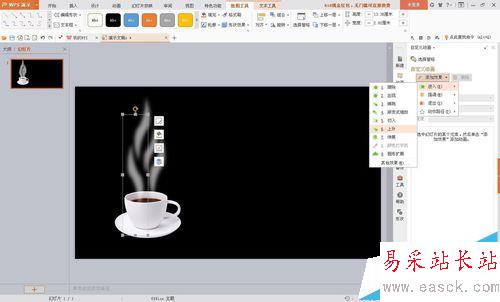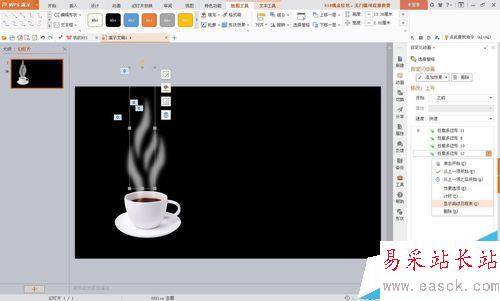 用wps演示制作熱咖啡裊裊熱氣的動畫效果。