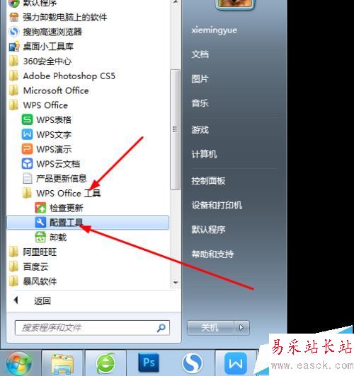 2、如圖所示,工具文件夾里邊的配置工具,點擊啟動工具設置。在這里可以對WPS軟件進行更新,重新注冊配置等等設置。