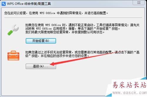3、我們選擇高級,如果WPS在使用過程中出現問題可以嘗試修復一下,今天我們使用到的是高級中的其他設置項目。