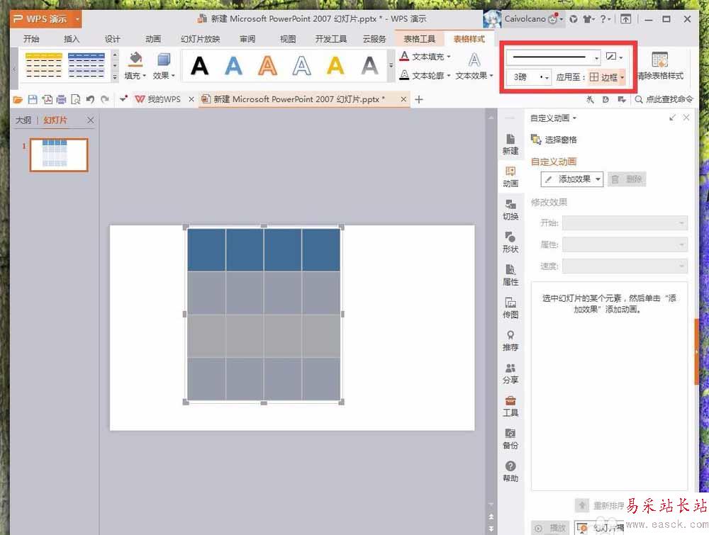 5、然后全選表格,將表格樣式中線框顏色、大小設置一下