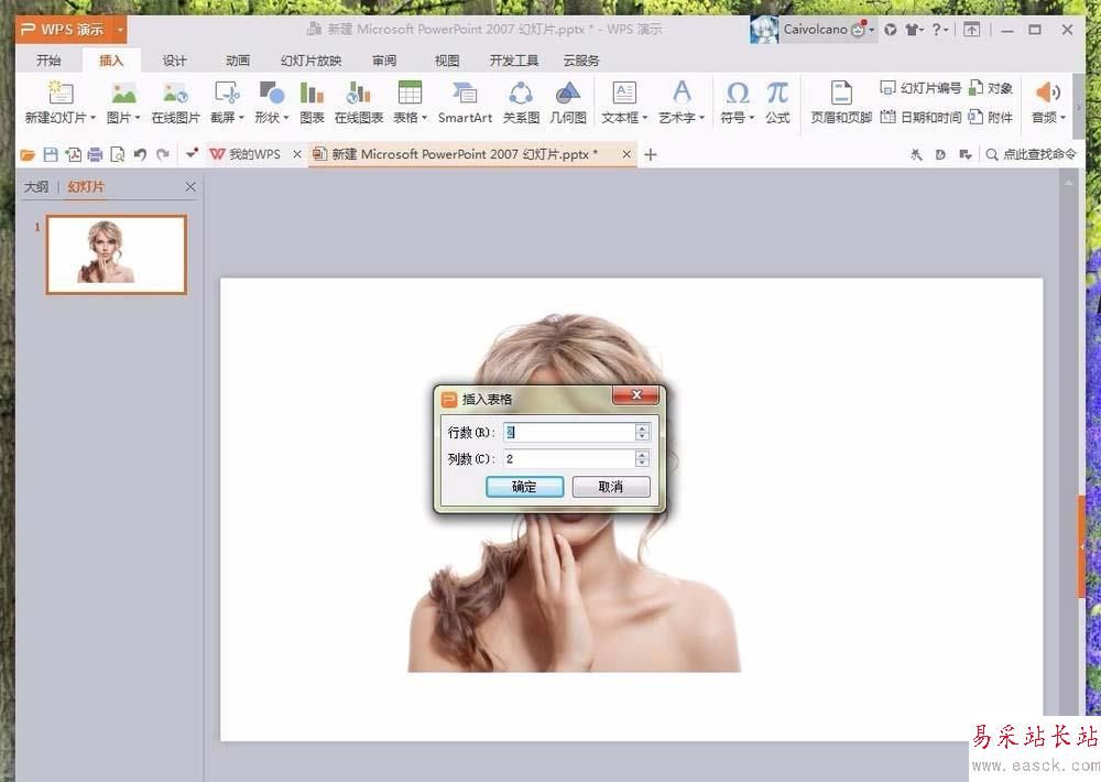 2、再WPS里插入一個表格,表格的行數、列數根據自己需要設置。