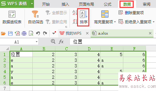 4、選中要自定義排序的單元格,點擊“數據”->“排序”,如下圖