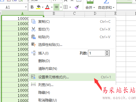 1、打開表格,選中電話號碼所在的列,如“A列”