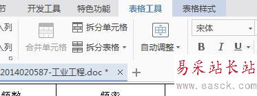 3、實現在分頁的表格上添加“續表”字樣,首先把鼠標光標移到分頁的第一行,如下圖所示,然后點擊“表格工具”中的“拆分表格”--“按行拆分”,就會發現光標移動到如圖位置,現在就可以編輯文字了.