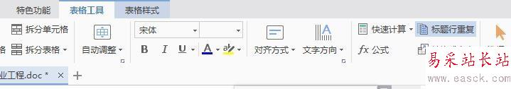 1、首先選中標題行,然后在“表格工具”中點擊“標題行重復”。