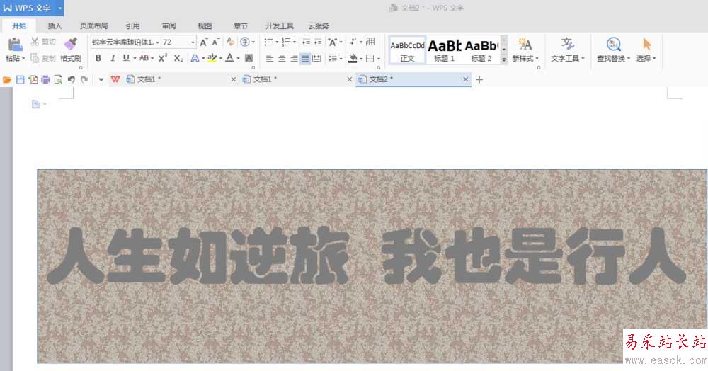 7、經過美化處理后,我們放大看一下,是否需要優化。這樣,一幅浮雕文字就出來了。怎樣,WPS文字也可以做出浮雕效果吧?你也試試看。