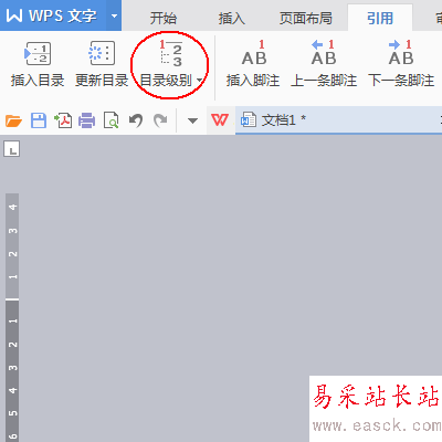 3、點擊工具欄“引用”,在"引用"工具列表中找到“目錄級別”工具。