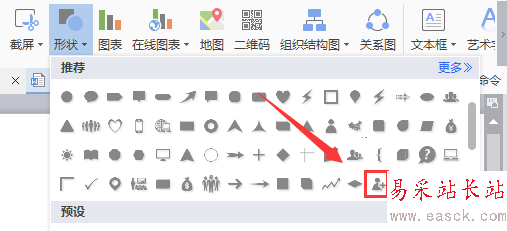 4、點(diǎn)擊形狀選項(xiàng),在其子級(jí)菜單里找到推薦選項(xiàng),如圖所示: