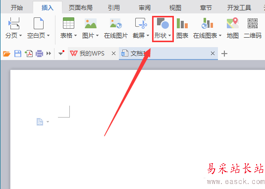 3、點擊插入選項,在其編輯工具區(qū)里找到形狀選項,如圖所示: