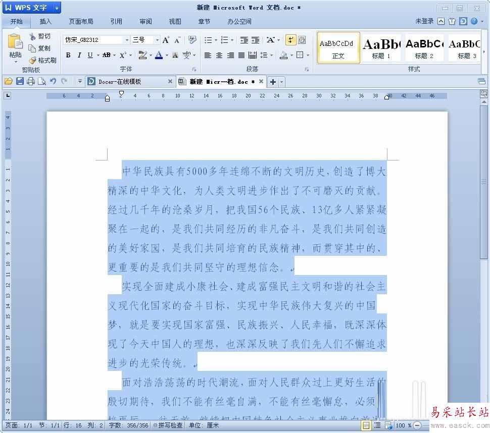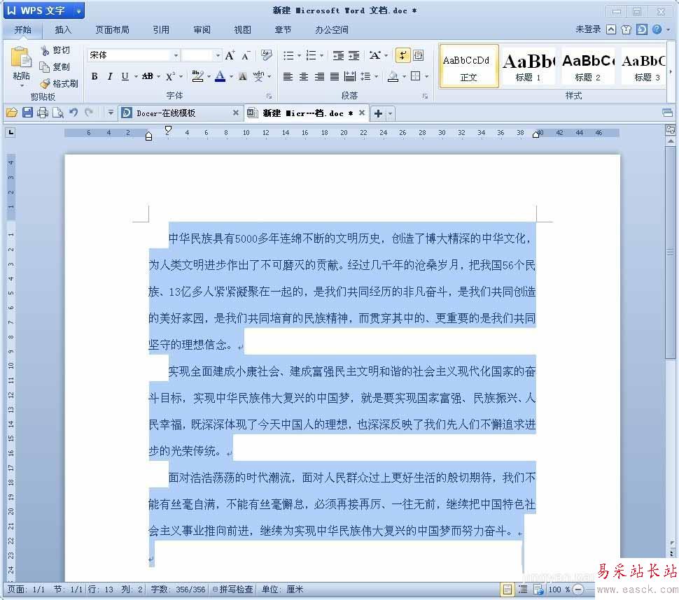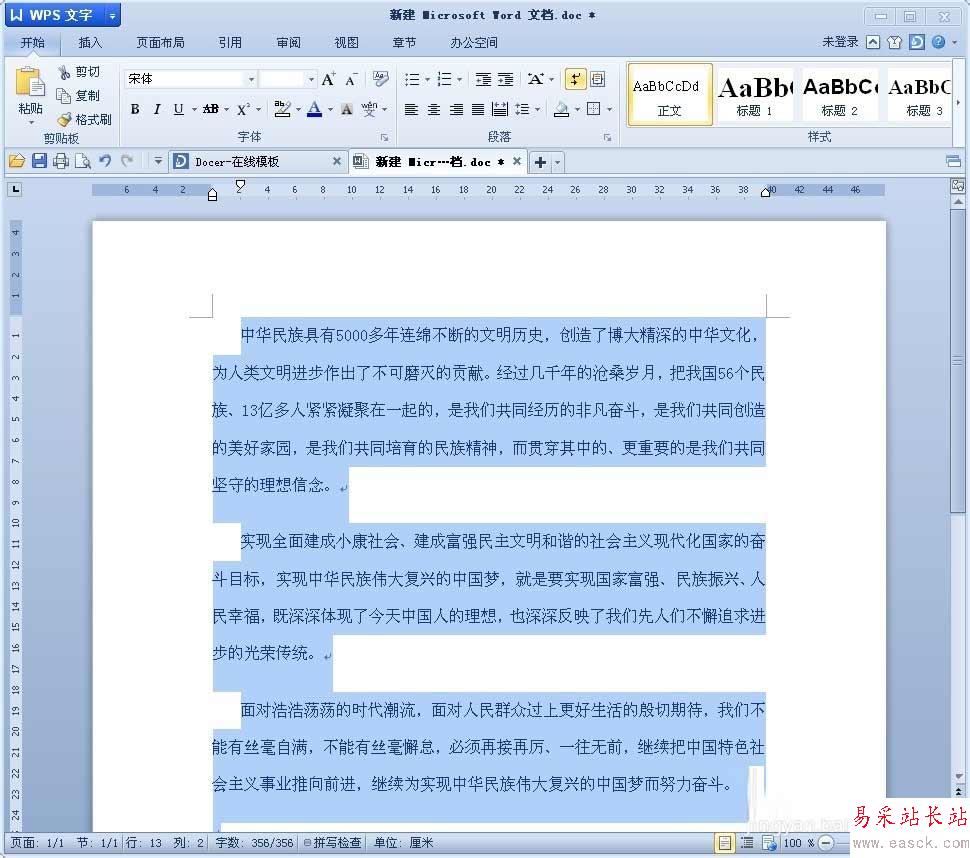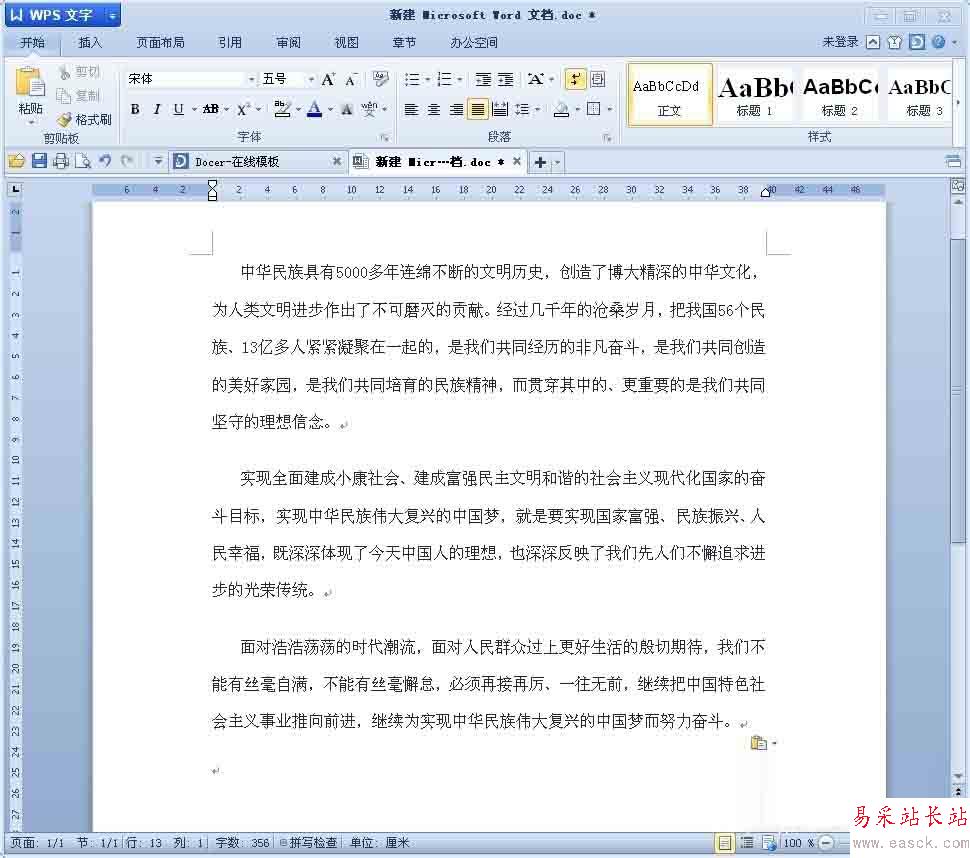 2、在word里面輸入要編輯的文字。筆者為了方便,在網上找了“中國夢”的相關文章復制粘貼了一下,效果如下。
