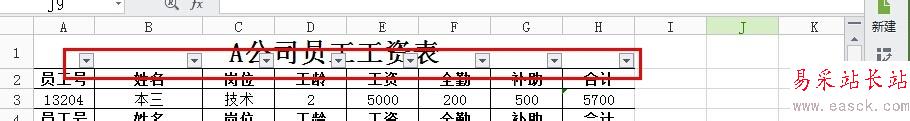 8、我們設(shè)置自動篩選之后在我們表頭上會出現(xiàn)一個倒三角的下拉菜單按鈕。