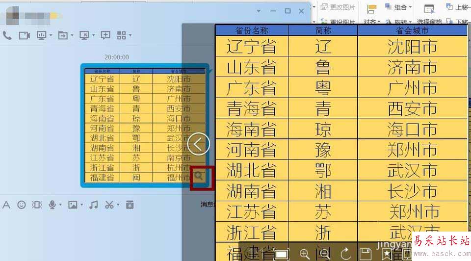 5、最后,看下發(fā)送聊天軟件圖片時的效果。默認(rèn)顯示的壓縮圖,點擊放大鏡查看原圖時,便是完整&無損的圖表圖片。