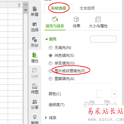 5、在“屬性”中,點擊“填充與線條”-“填充”-“圖片或紋理填充”。