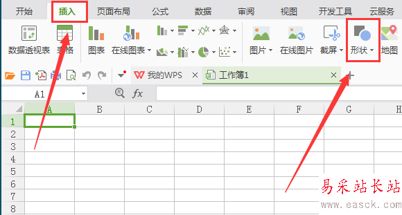 3、點擊插入選項,在其編輯工具區里找到形狀選項,如圖所示:
