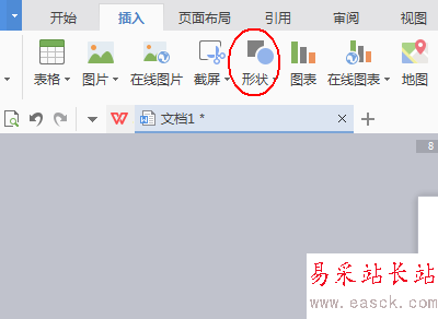 1、點擊“插入”工具,在“插入”工具列表中找到“形狀”。