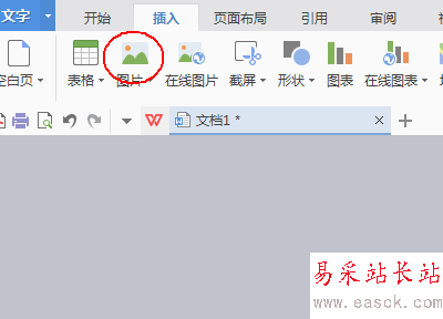 2、點擊“插入”,在插入列表中找到“圖片”工具,并將我們下載的圖片插入明信片文檔中。