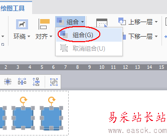 6、點擊“繪圖工具”,在“繪圖工具列表”中點擊“組合”-“組合”。這樣方便后期對這6個圖形的統一編輯。